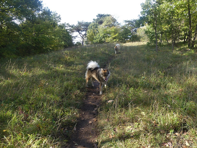 Im Märchenwald: Die drei Hunde sitzen auf einem Hang der Himmelswiese und schauen besorgt.